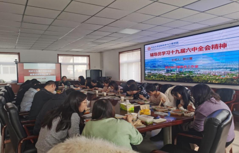 党委副书记郭云霞老师以“党的十九届六中全会重要成果和核心要义”为主题,带领辅导员学习了《中共关于党的百年奋斗重大成就和历史经验的决议》,从五个方面了解中国共产党百年奋斗了历史意义和百年来中国共产党领导人民进行伟大奋斗积累的宝贵的历史经验,她强调辅导员老师们要把学习宣传贯彻党的十九届六中全会精神作为当前和今后一个时期的重大政治任务,要做到周密的学习安排,组织开展集中宣讲,把贯彻落实全会精神与做好日常工作紧密结合起来。辅导员们认真学习,收获满满。