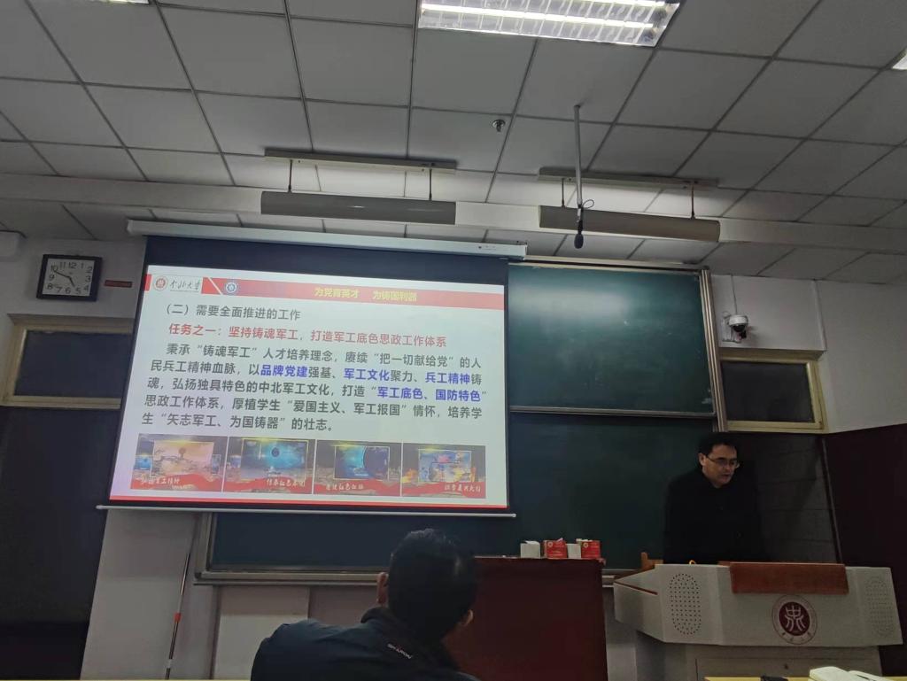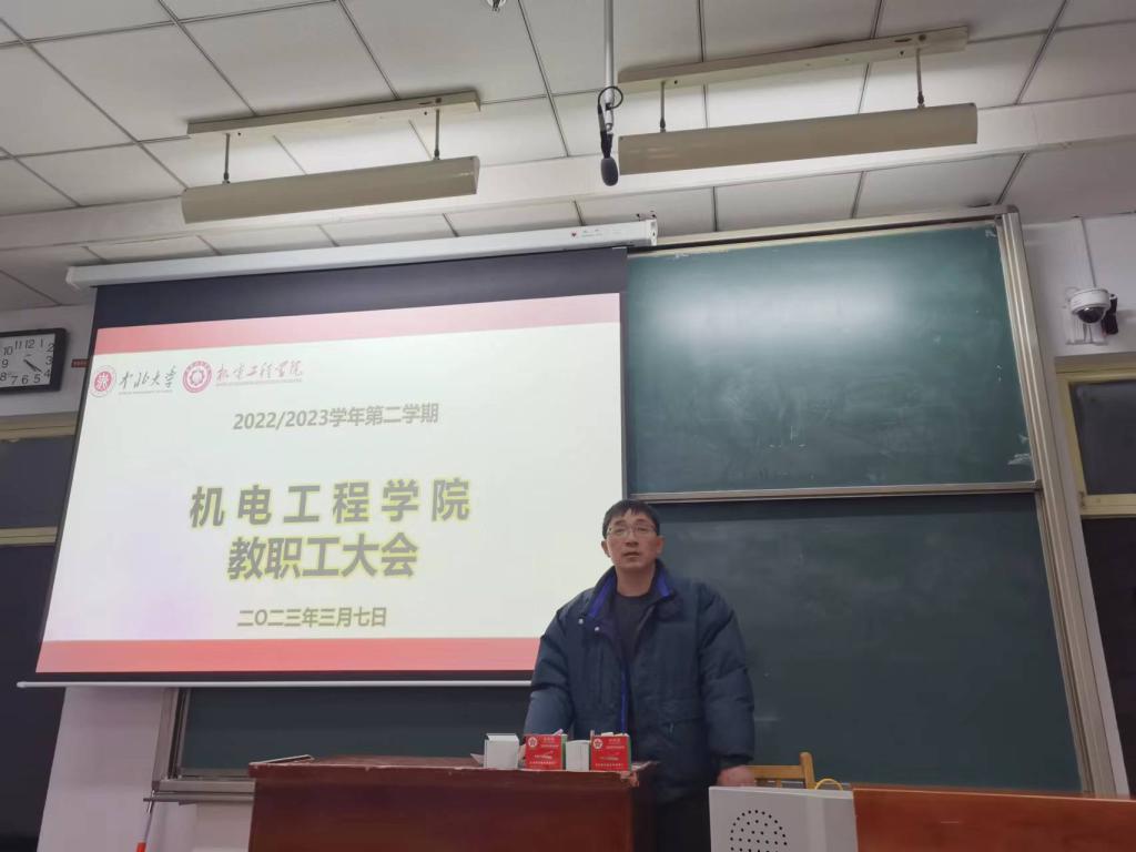 李世中副院长首先强调了师德师风的重要性,要求各位老师以德立身、以德立学、以德施教、以德育德,坚持“四个相统一”,争做“四有”好老师,当好“四个引路人”;然后对申报国家级、省级一流课程,本科专业三级认证,工程教育专业认证,本科毕业设计,课程思政建设,2023版人才培养方案修订、实验室安全等工作进行了安排部署。赵河明副院长就兵器学科建设、科学研究、研究生招生培养、卓越工程师培养、保密安全工作等进行了部署,并指出大家要能下心来凝练科研方向,才能组建“大团队”、争取“大项目”。刘光副书记强调了思想政治工作是一切工作的生命线,希望大家能将思政工作贯彻在专业课教学中;同时要求每位教职员工要有底线意识,做到保持廉洁自律、坚守高尚情操;随后对本学期学生工作和工会工作进行了具体安排部署。