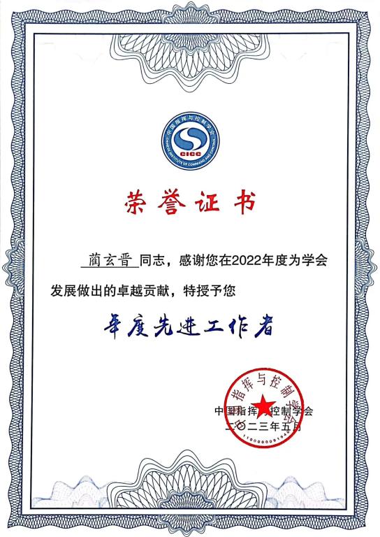 在国防教育取得的优异成绩表示祝贺。另外,我校兵棋推演专家蔺玄晋副教授获得中国指挥与控制学会2022年度先进工作者。