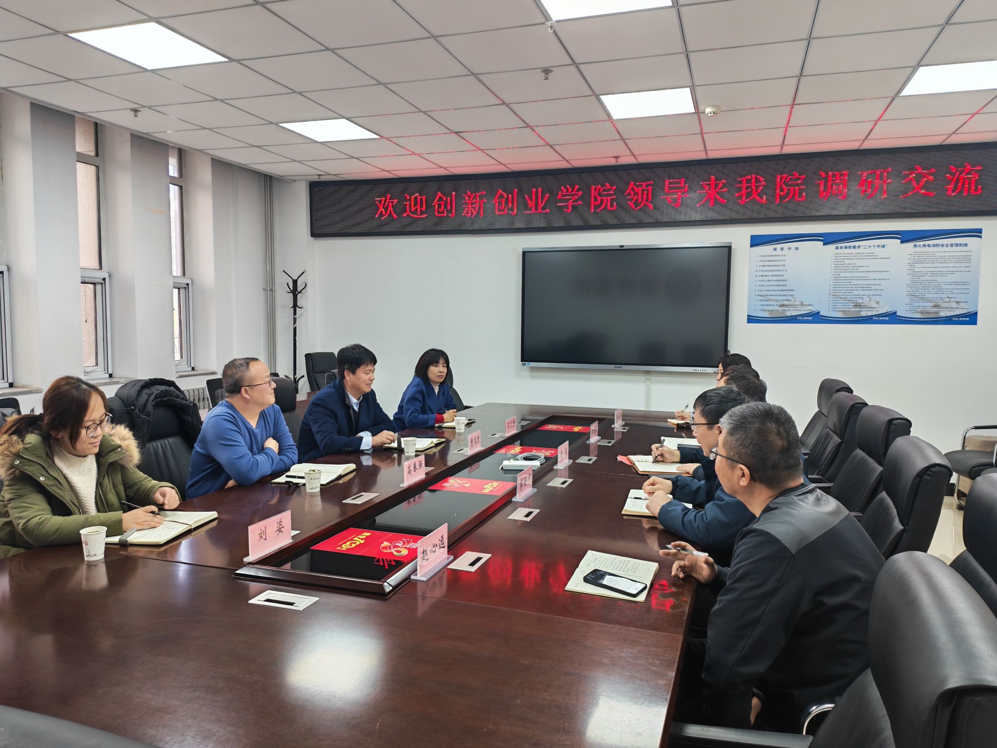 院长李强、党委副书记田海燕、副院长李世中及骨干教师代表出席会议,双方围绕学校高质量科技发展大会上张晓永书记和陈钱校长的讲话精神,就赛事攻坚、资源整合、教创融合等核心议题展开深度研讨。