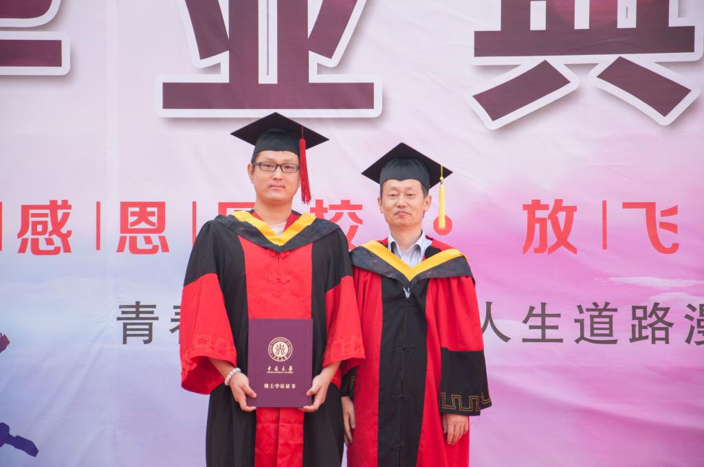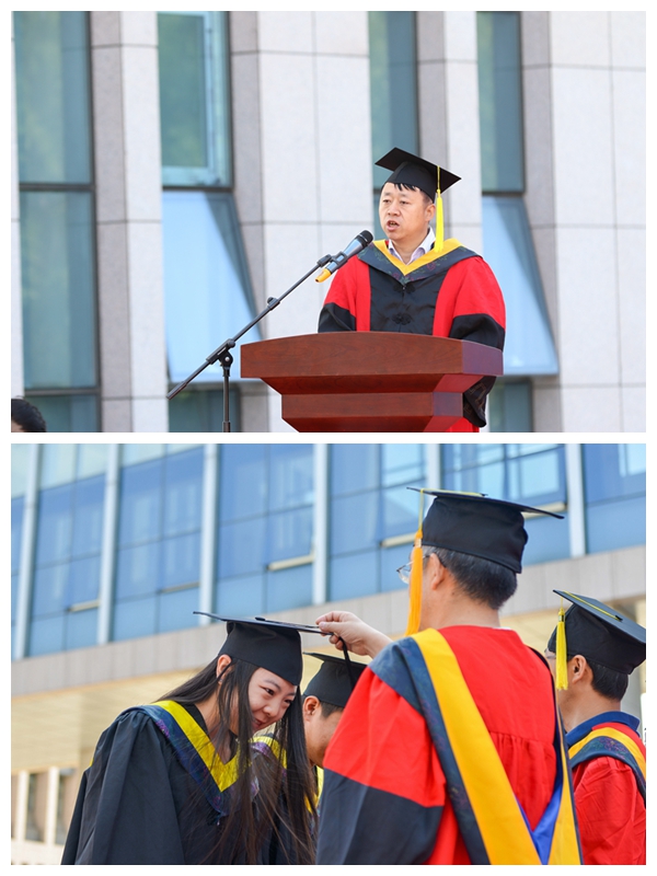 包括院领导、党委委员和学位委员会委员在内的十位老师为全体毕业生一一拨正流苏,颁发毕业证、学位证。