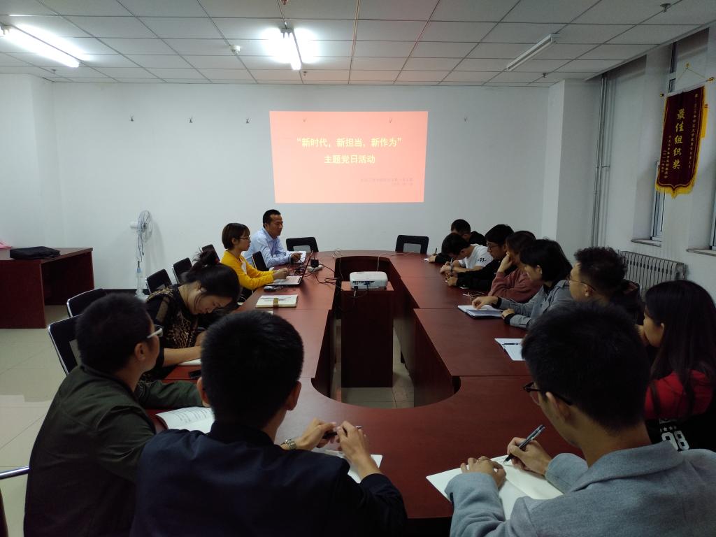 9月18日下午3:00,研究生第一党支部在科学楼2#312会议室开展 “新时代 新担当 新作为”暨纪念“九一八”主题党日活动,党委副书记刘光、辅导员王丙龙、研究生第一党支部全体党员参加。