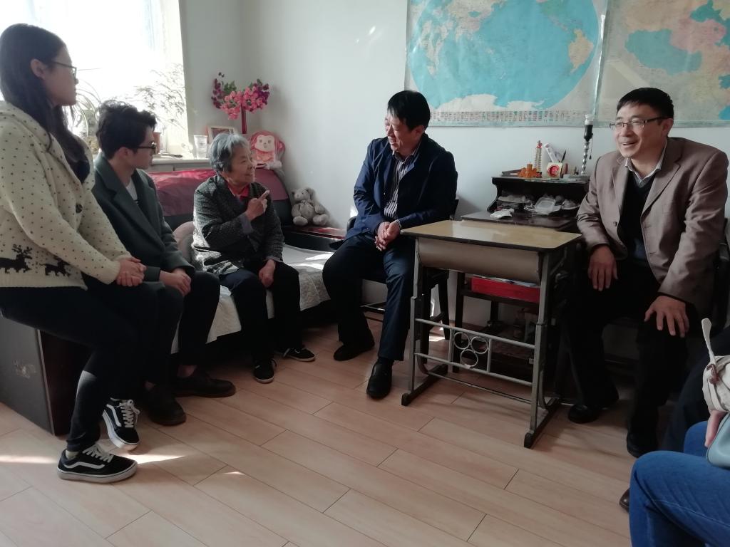 党委书记罗建国,副院长李世中、副书记刘光、工会主席崔俊杰、教学科科长李霞、捐助奖学金获得者等人代表全院师生来到王靖君、段维民、葛双喜、赵捍东、崔志琴等几位退休老教师和生病教师身边走访慰问,送上广大师生的祝福,祝福老教师们重阳节快乐,健康长寿,祝愿生病的老师保重身体,早日康复。