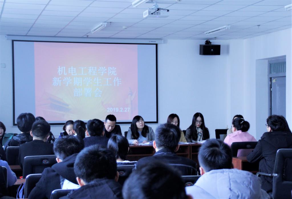 新学期工作部署会于2019年2月27日下午2时在科学楼812教室举行。会议由团委书记李晶晶主持,党委副书记刘光出席了此次会议,学生科科长张丽花及全体辅导员、团委、学生会、科协及其他服务组织全体干部也参与其中。