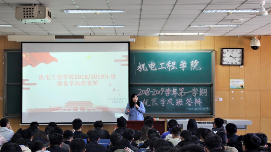 在答辩环节,各班代表分别从班级简介、学风举措、获得成绩、未来展望等几个模块向在场师生介绍了本班优良学风建设的情况;以学期内的优良学风建设为出发点和着力点,着重展示了在优良学风熏陶下班级的成绩进步和荣誉收获。本次优良学风班评选,各班以PPT和演讲的形式,通过班级均分、考试优秀率、英语四六级通过率、党员数量、考研人数等具体指标,向全院师生描绘出机电工程学子勤学日新、积极进取、青春逐梦的画面,勾勒出一幅幅属于班级的逐梦宏图。