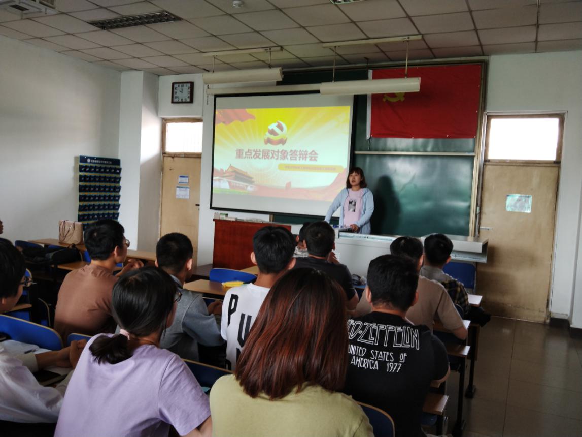 本次会议由支部副书记卜彦鹏同志主持。支部书记段雪倩老师发言希望大家能够公正打分,不徇私舞弊,对于预备党员的选取大家应秉承“宁缺毋滥”的态度。随后,卜彦鹏同志介绍了本次答辩的规定及顺序,各重点发展对象依次上台答辩。结合PPT展示,他们介绍了大学以来自己在工作、学习、生活、思想等方面的表现。答辩时长为两分钟,在答辩结束后,培养联系人向其提出问题,通过他的现场作答,其余同志加深了对他的了解。之后,正式党员与预备党员对重点发展对象的表现做出点评,指出了他们的不足与需要改进之处。