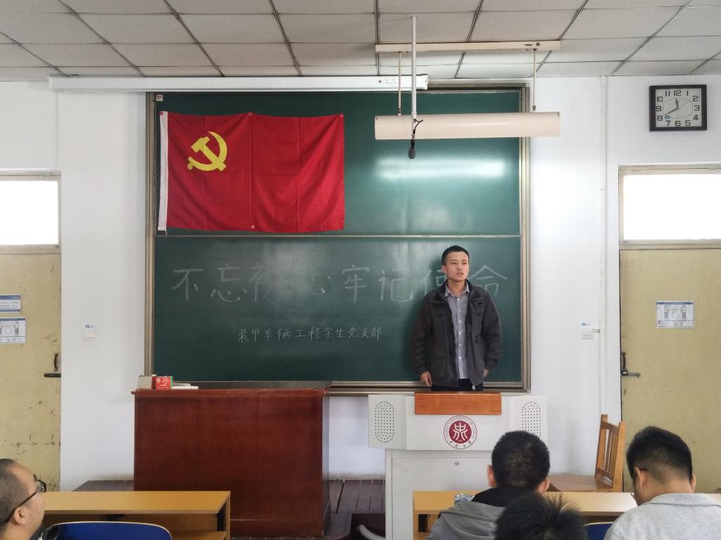 装甲车辆工程专业党支部在11216T教室开展了“不忘初心、牢记使命”主题教育活动。本次活动由支部副书记许增瑞同志主持。