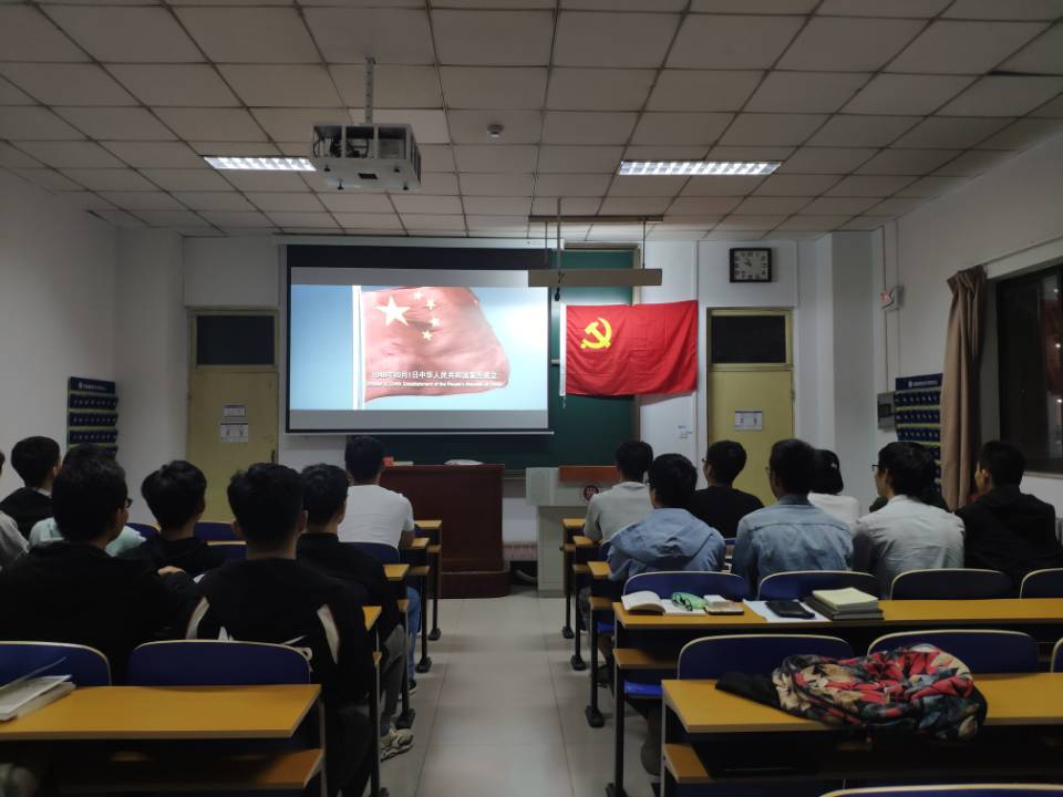 武器发射工程专业党支部在11216教室成功举办了纪念中华人民共和国成立70周年党日活动。本次活动由支部副书记薛淑娟同志主持,支部全体党员参加。