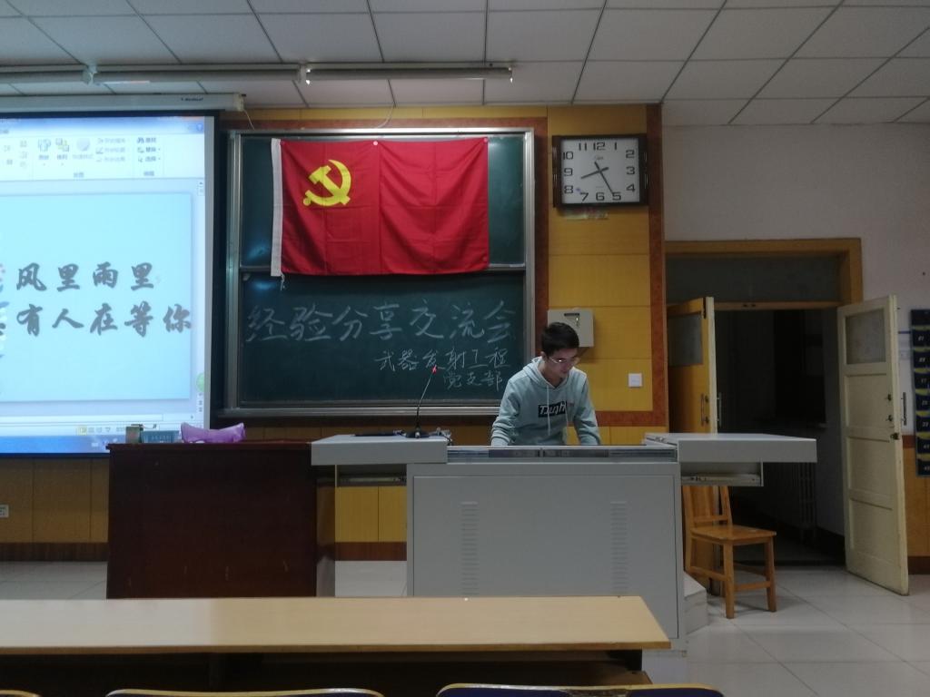 武器发射工程专业党支部在09203教室开展了党员联系班级活动。参与本次活动的班级有兵器一、二、三班。本次活动由支部副书记薛淑娟同志主持,杨雪,付国栋,张泽健三位学生作为经验分享人出席了本次活动。