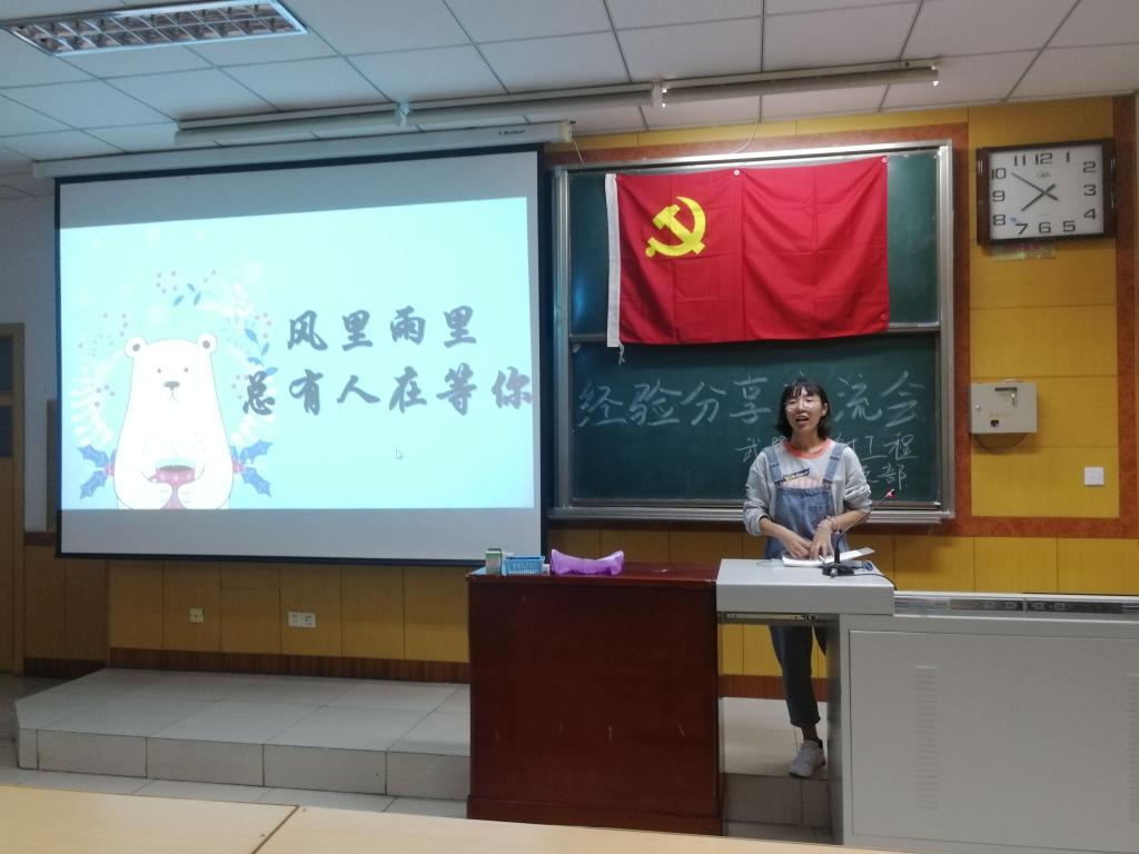 随后,杨雪同志主要从自己在大学的工作经历,参加的各项文体活动方面为新生同学们讲述了丰富多彩的大学生活。其中,她也结合自身的经历想送给新生同学们一句话:有效交流能带来好的体验和发展,不仅要做倾听者,也要做发言者,每次尝试都是一次成长,不能急于求成,而要善于规划。