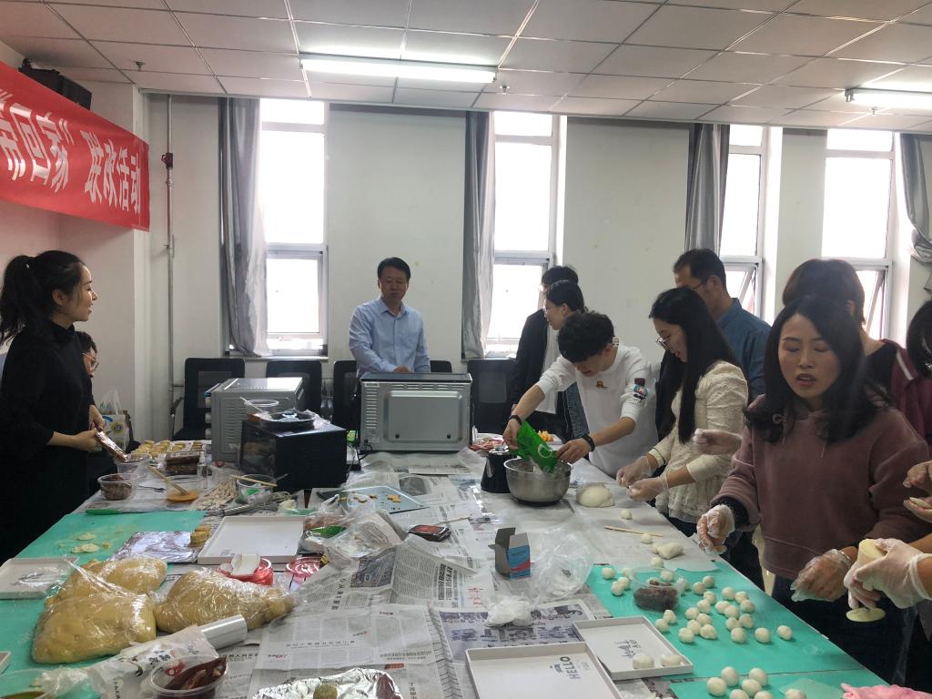 党委副书记刘光、工会主席崔俊杰等,与众多教职工共同制作月饼,并进行品鉴。